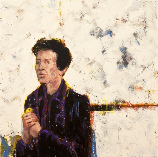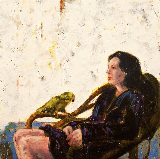 Marianne with Green Parrot. 30 x 30 in. oil on birch canvas. 2013