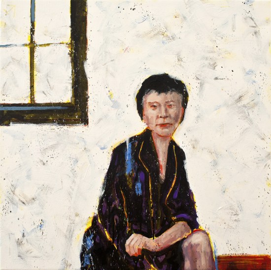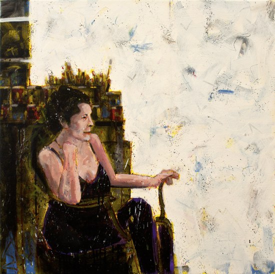 Marianne with Brushes and Paint Jars. 30 x 30 in. oil on birch canvas. 2013