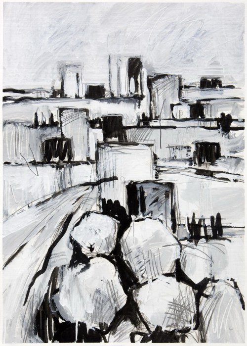 . 28" x 20" charcoal, graphite, ink and white acrylic on fabriano paper. 2018